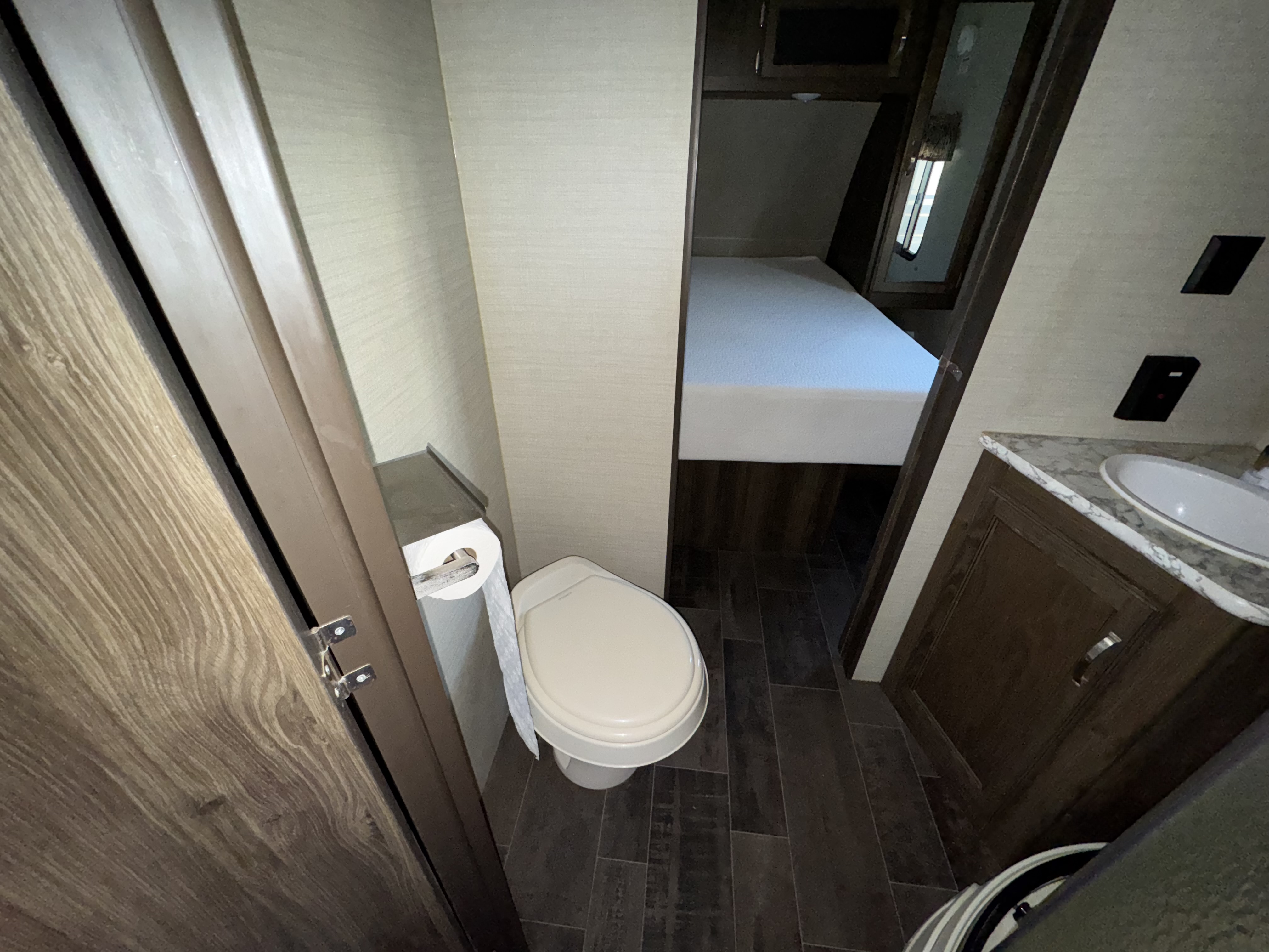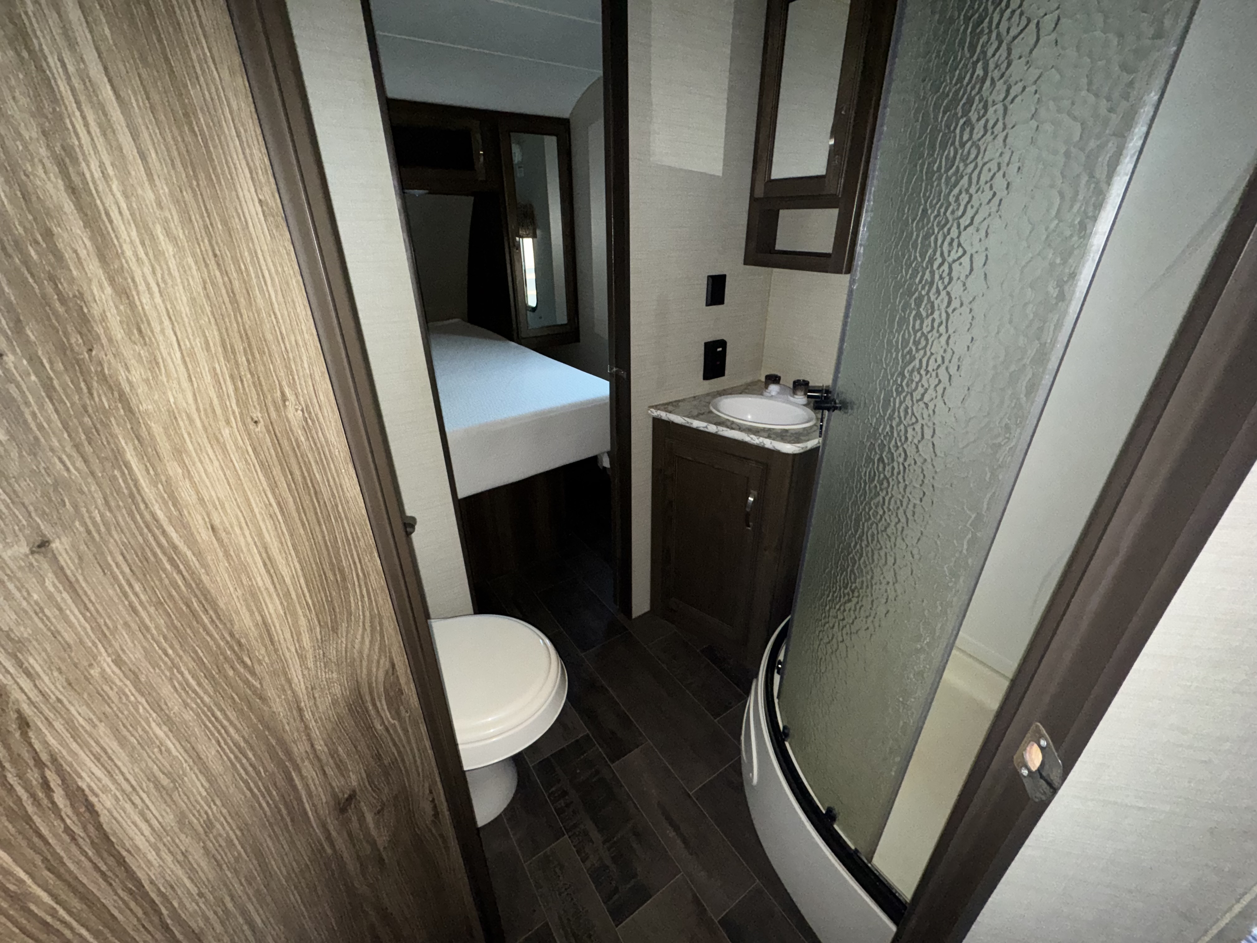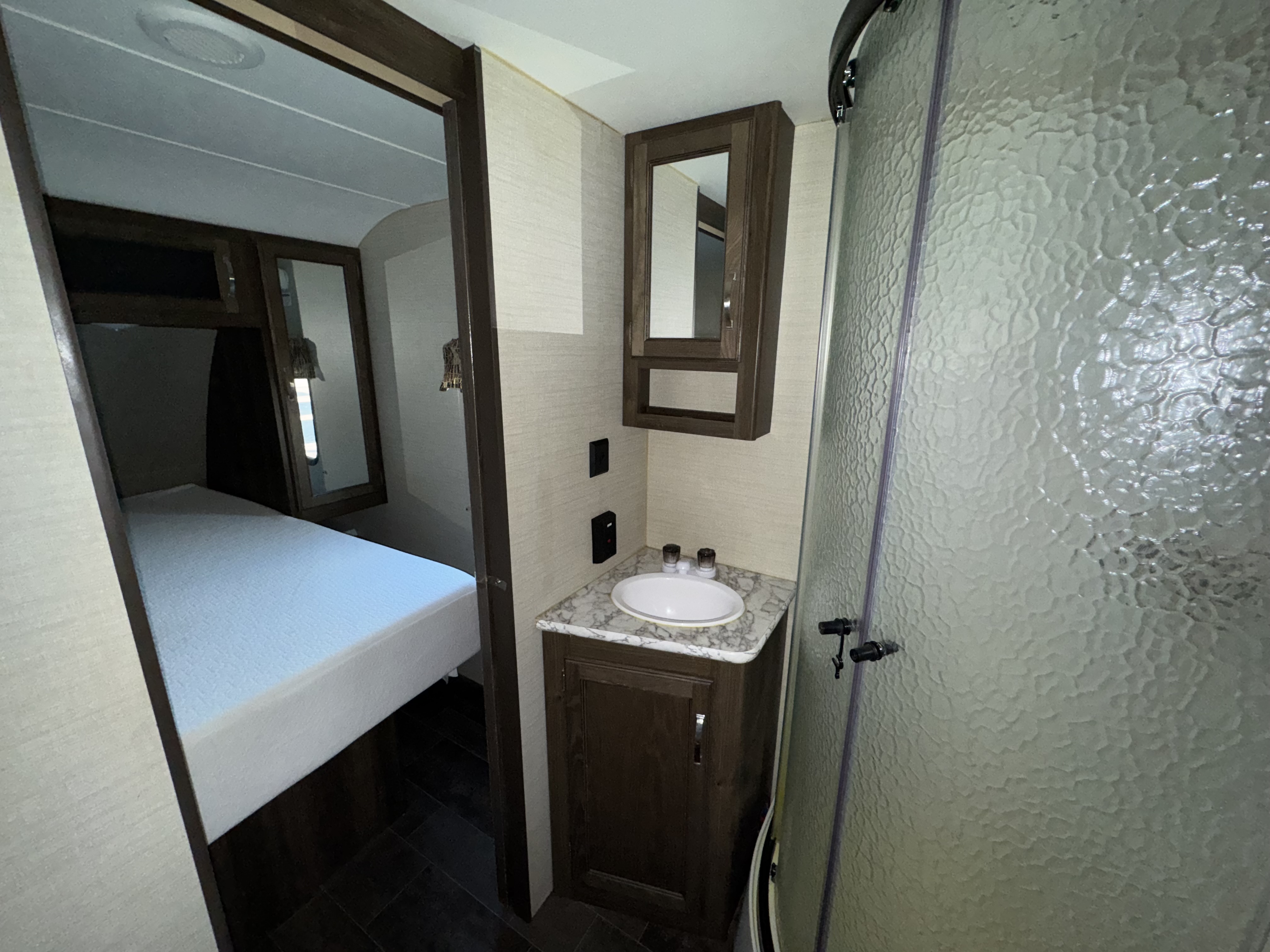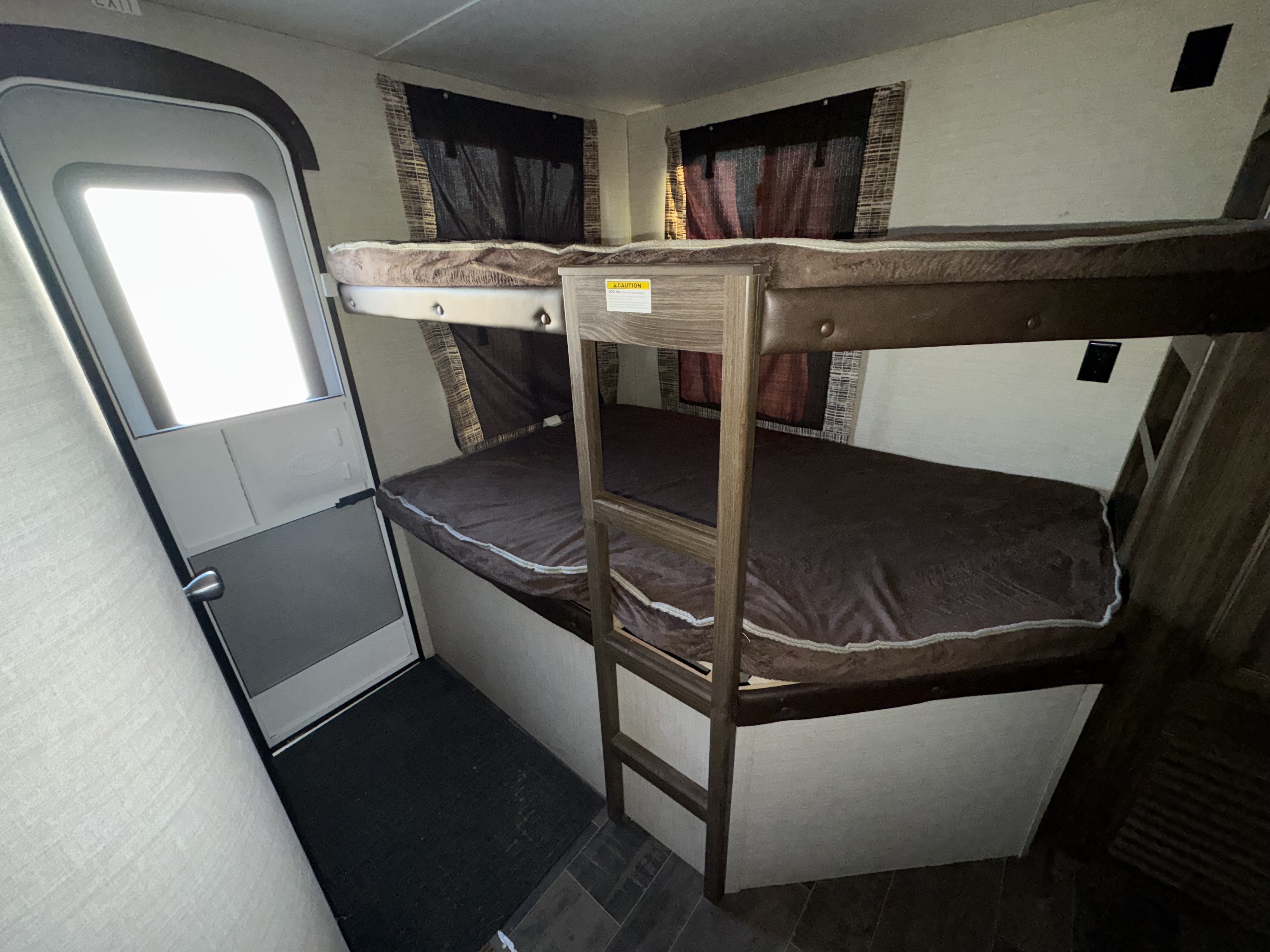 Travel Trailer with Rear Bunk Room, Front Bedroom and 1 & 1/2 Bathrooms.
