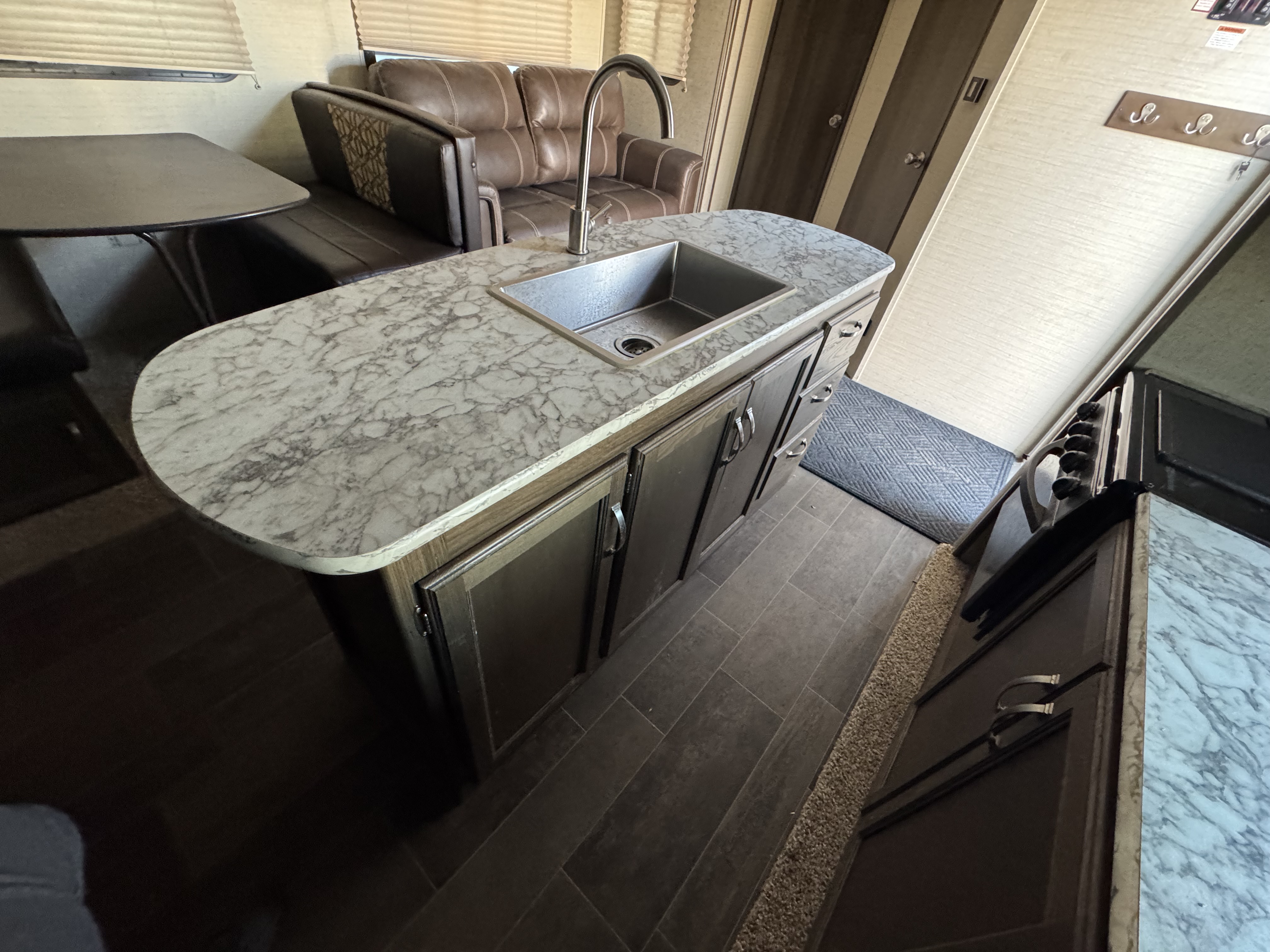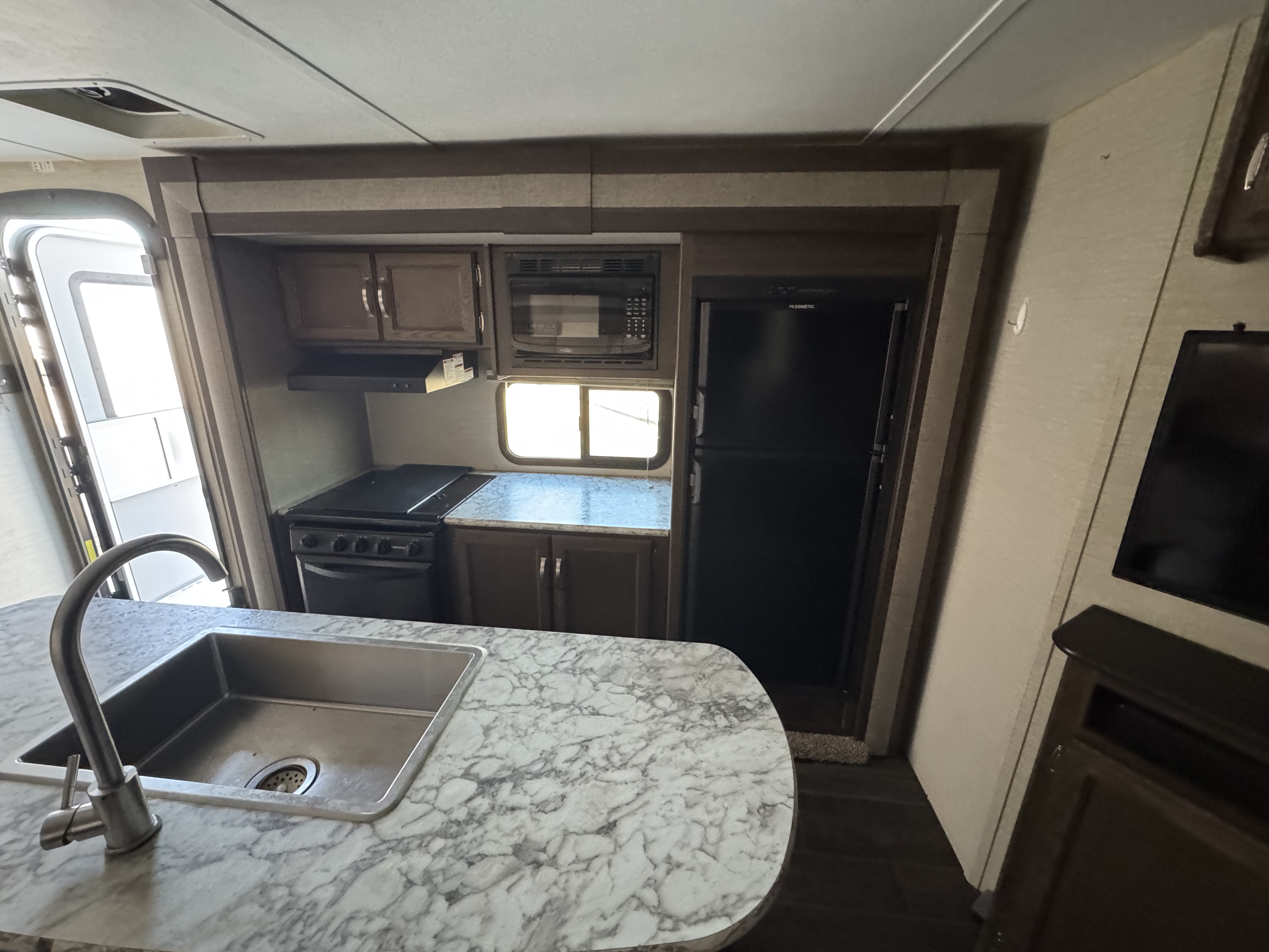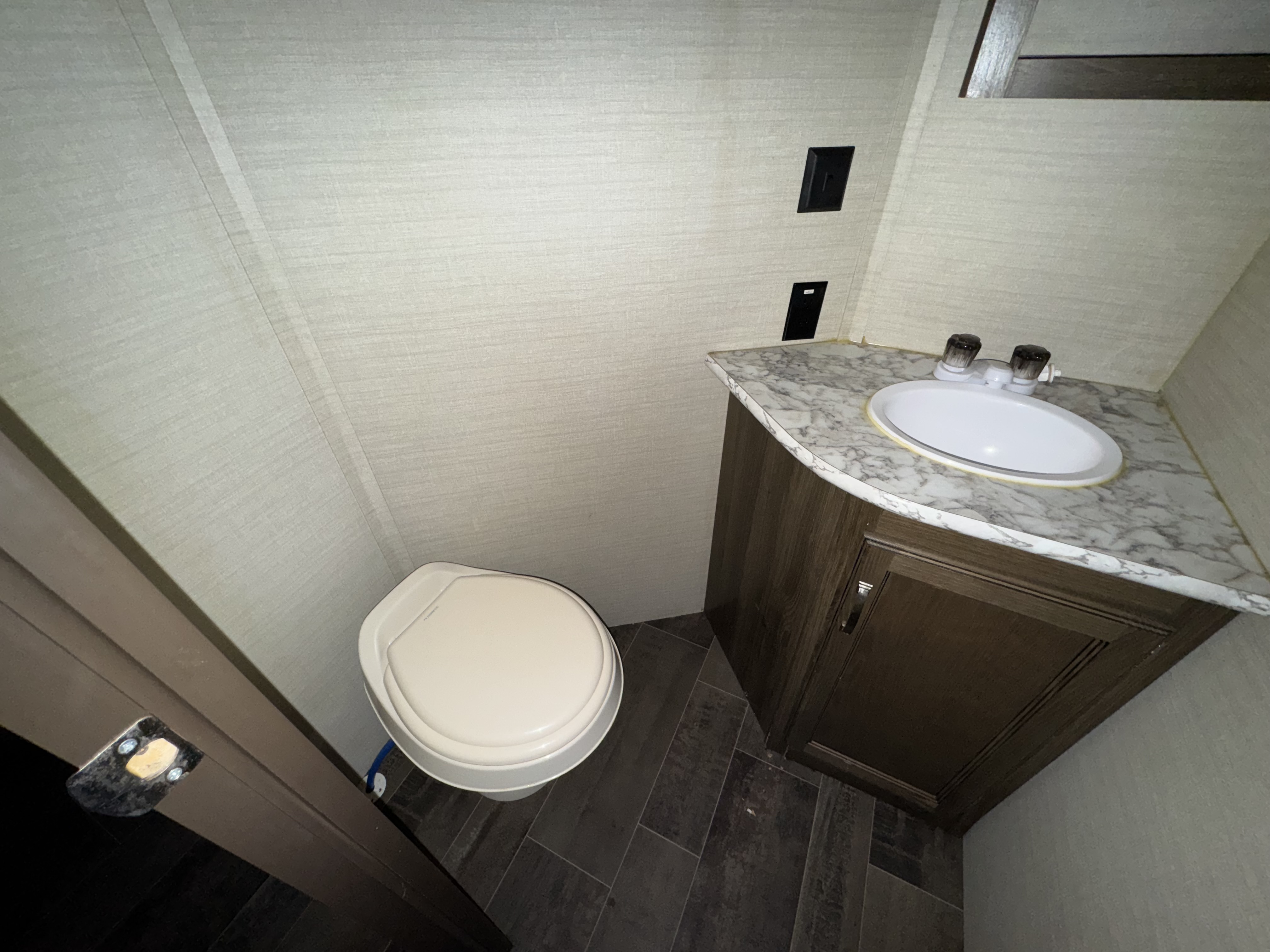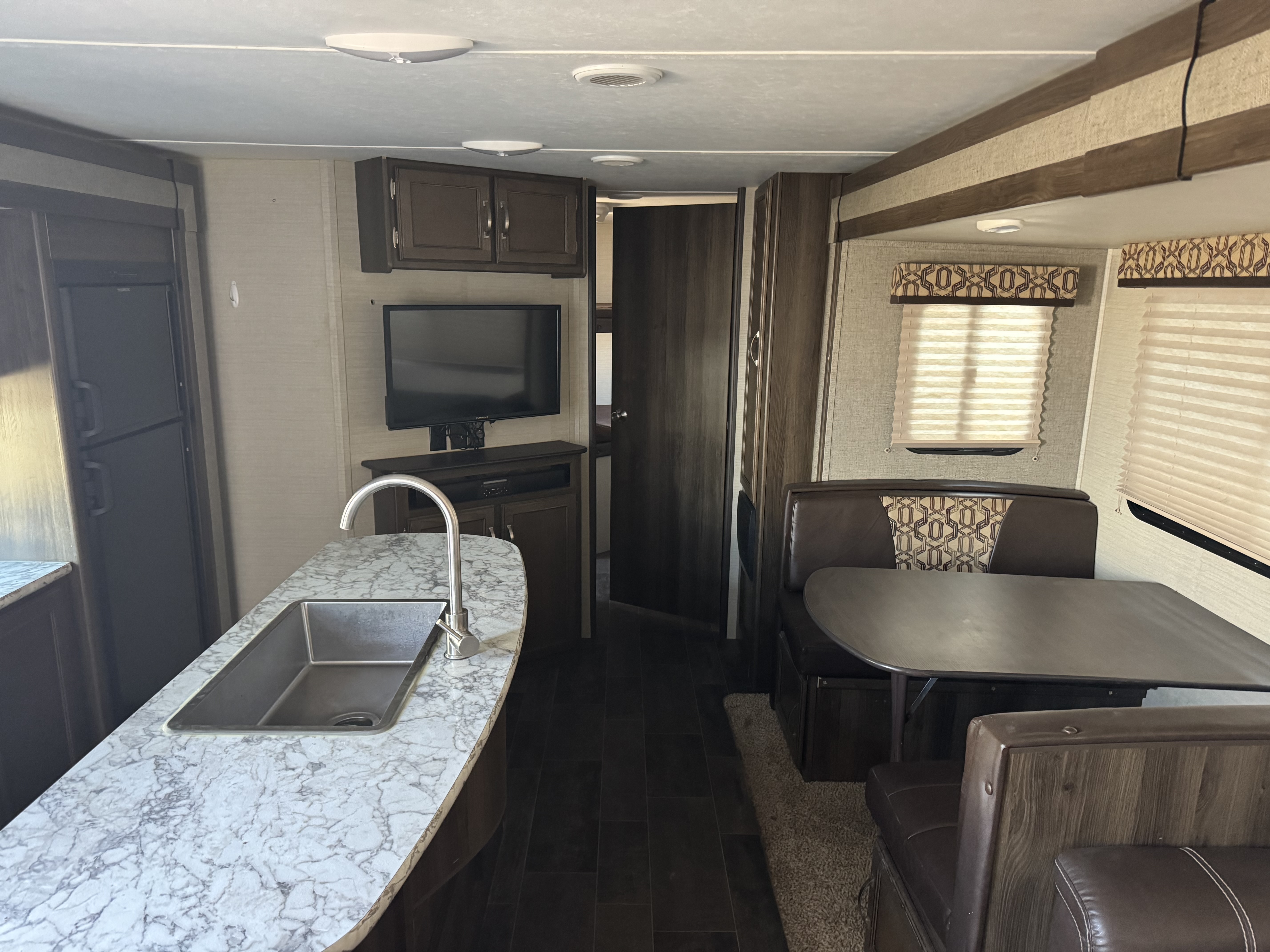 Travel Trailer with Rear Bunk Room, Front Bedroom and 1 & 1/2 Bathrooms.