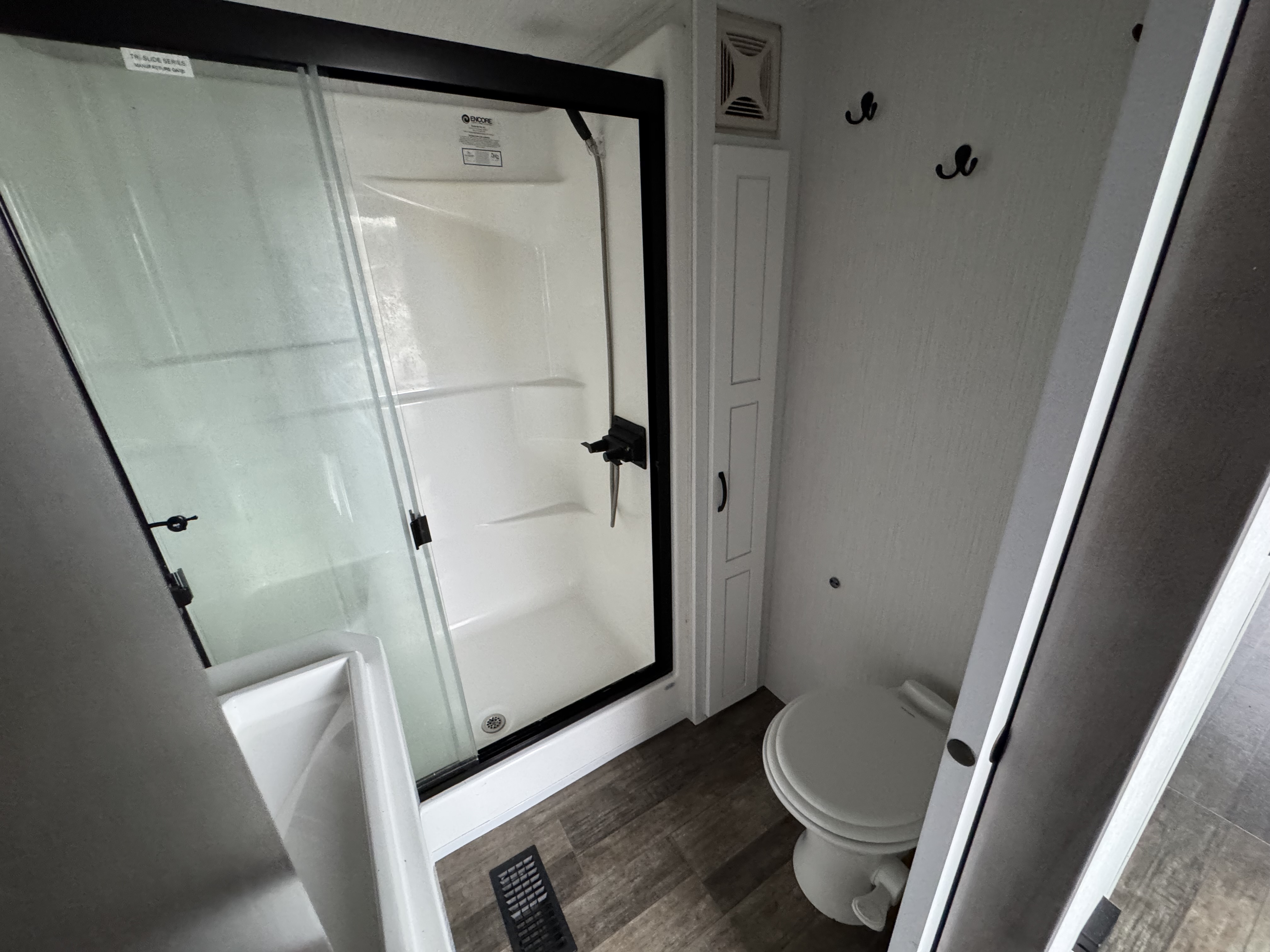 • One-piece, 48” x 30” Fiberglass Shower