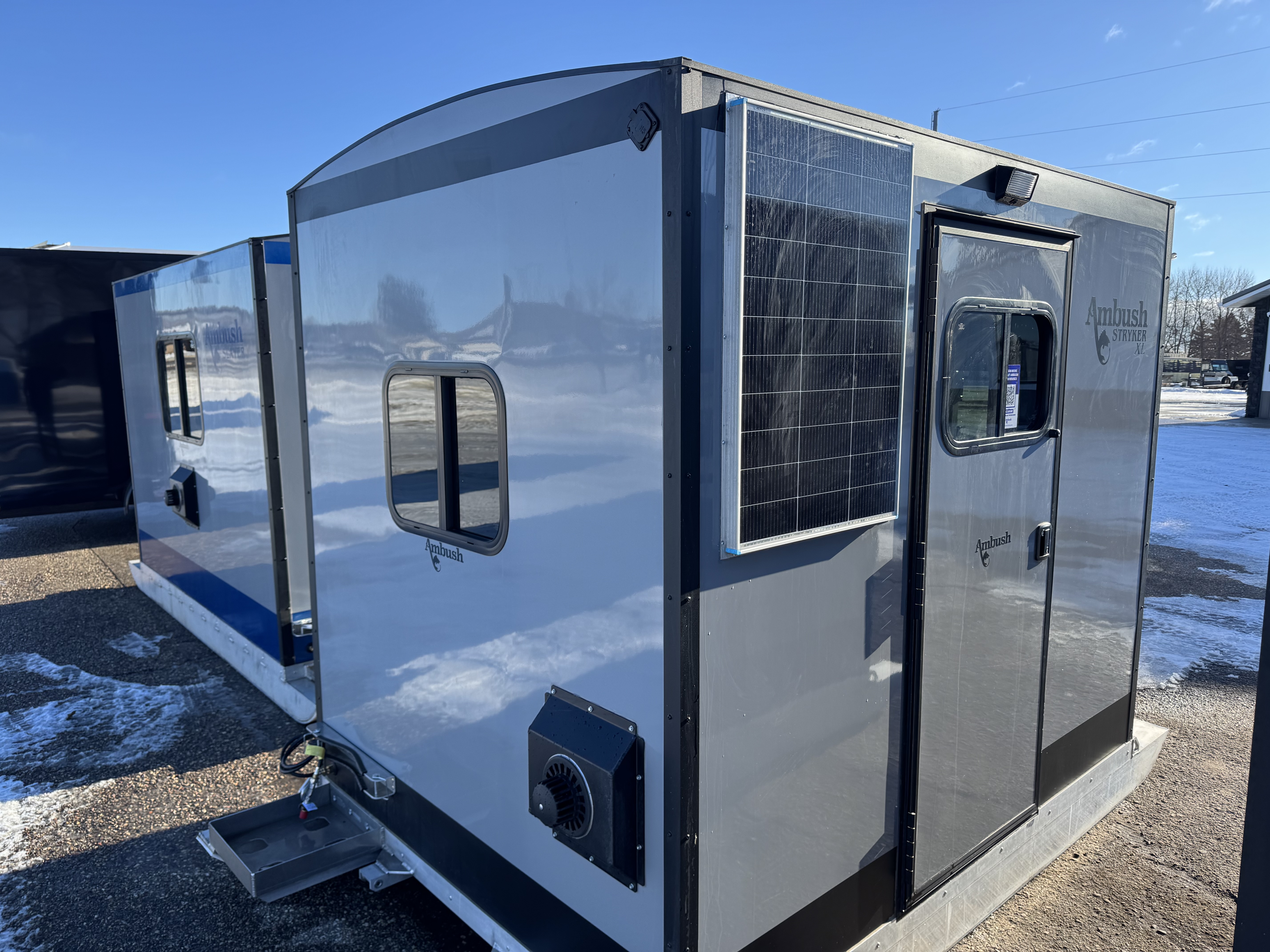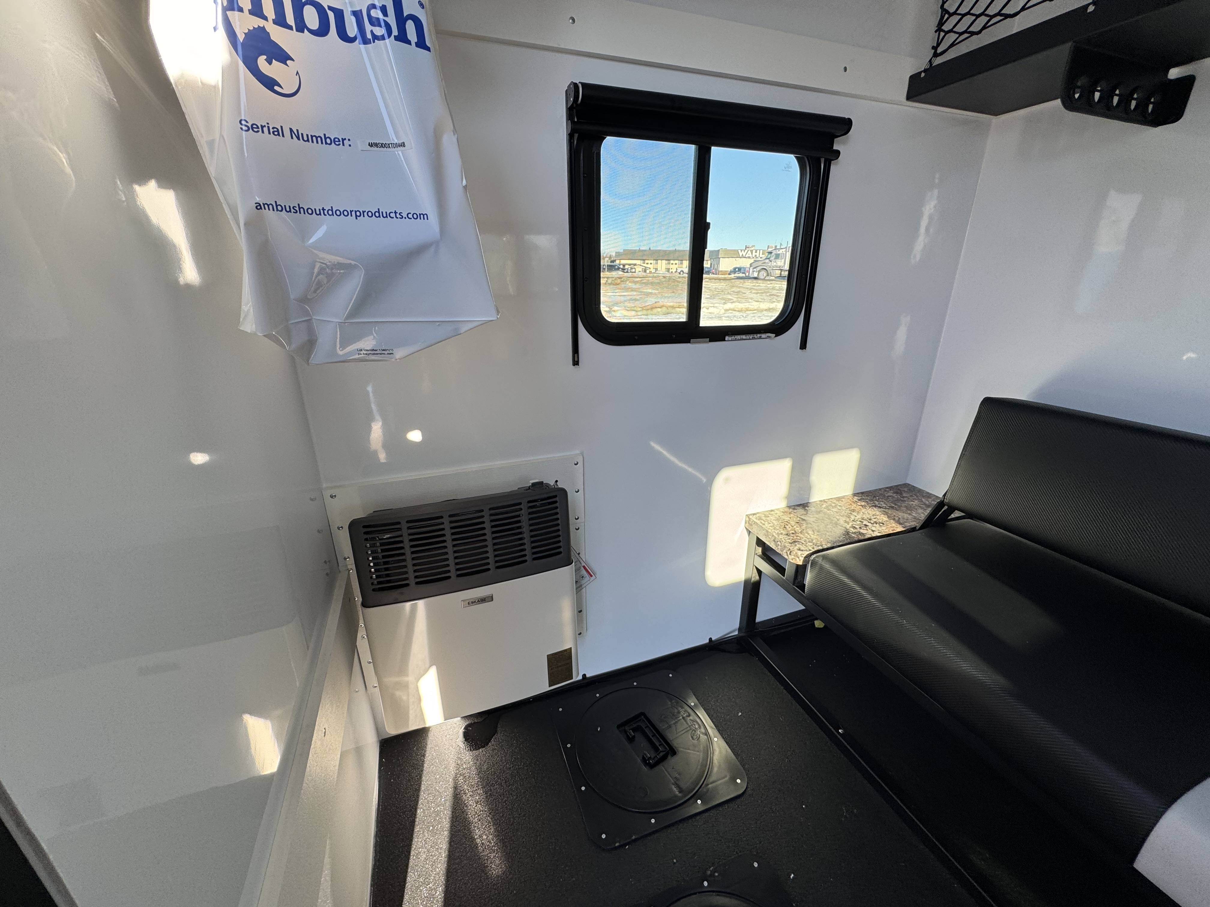 Optioned with Rollover Couch with End Tables, Direct Vent Heater, 100W Solar Panel, 110V Gen Plug, 300W Inverter, Shades on Door & Window, Rod Holder, Black Trim Upgrade, Ambush Tow Bar Hitch Holder, 6.5' Shelf Assembly, , Reflective Decals plus more...
