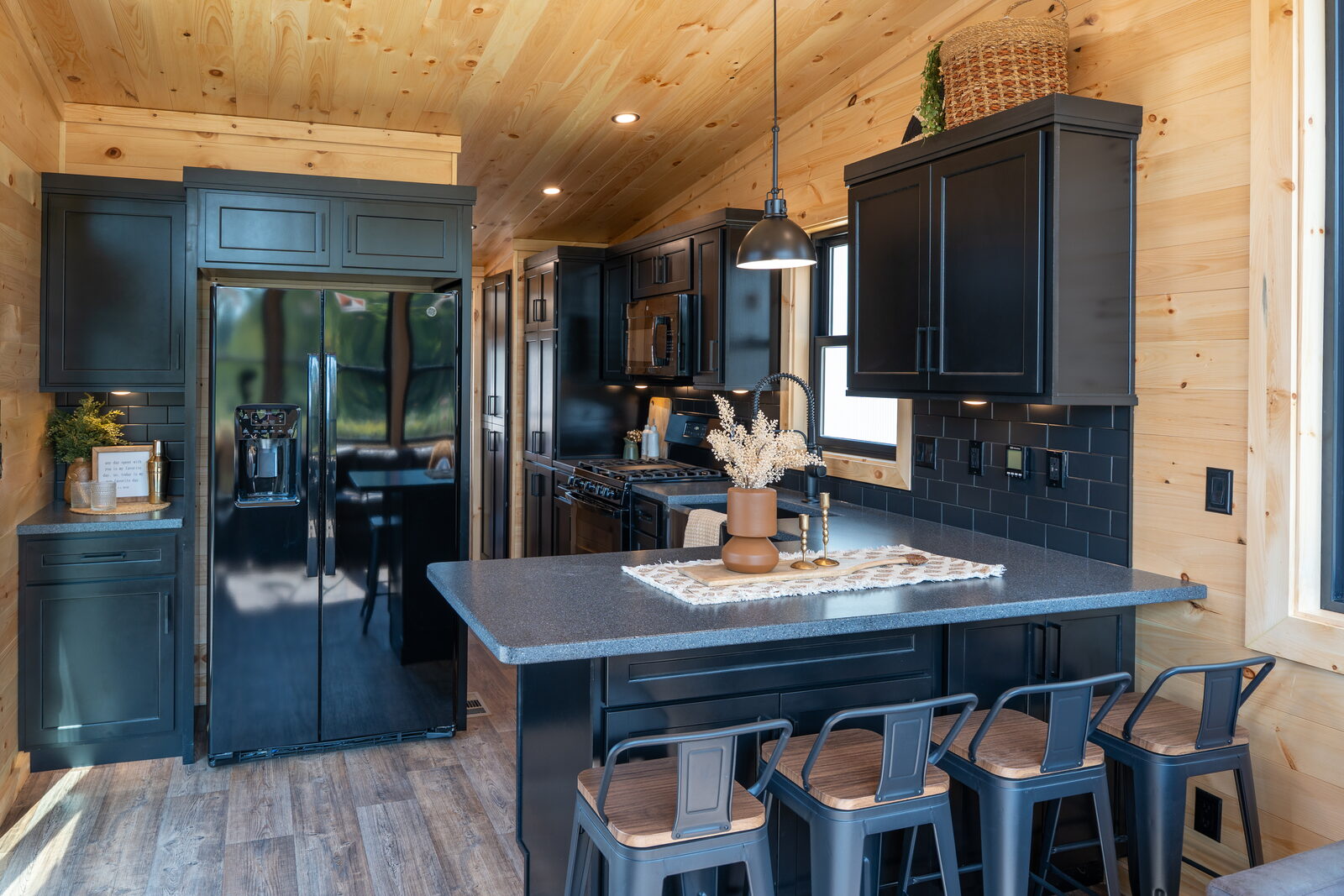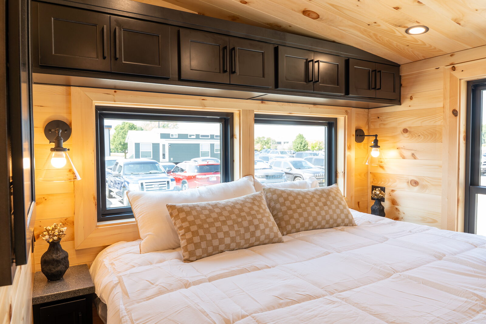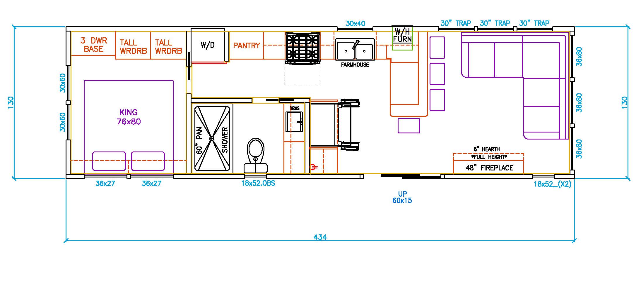 Elevation floorplans have been engineered to utilize the maximum 400 square feet in the most efficient way possible. Each Park Model can be built as a single, double, or non-loft, also giving the option of a straight or drop frame. Customers have the ability to choose between five front-end window designs, multiple bathroom layouts, and different wardrobe options, which are interchangeable in each floorplan. Many plans can accommodate amenities such as washer & dryer, dishwasher, larger refrigerator, or sectional sofa. Depending on the location of the unit, customers can select to have the floorplan flipped end-to-end or rolled side-to-side to best suit their needs.