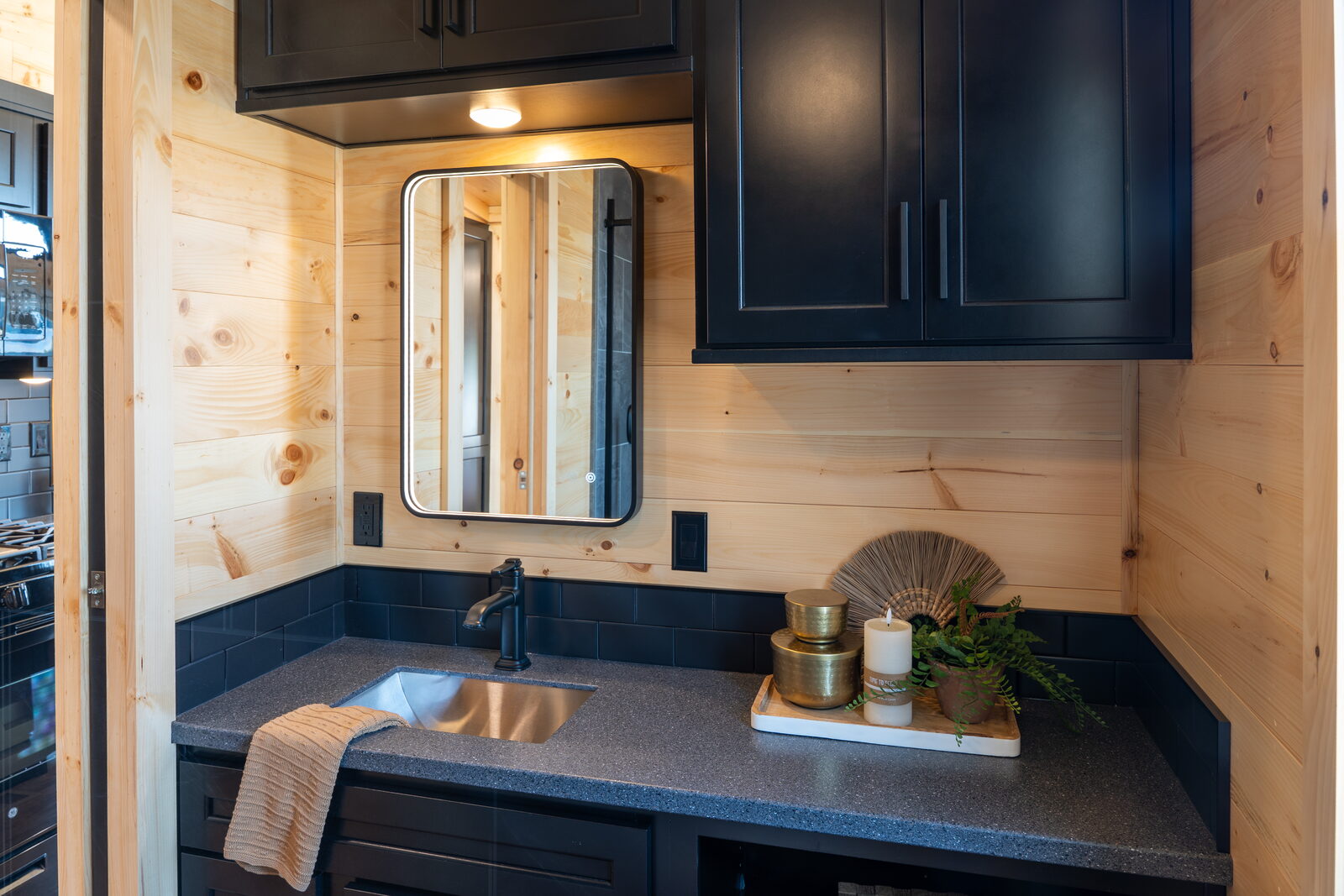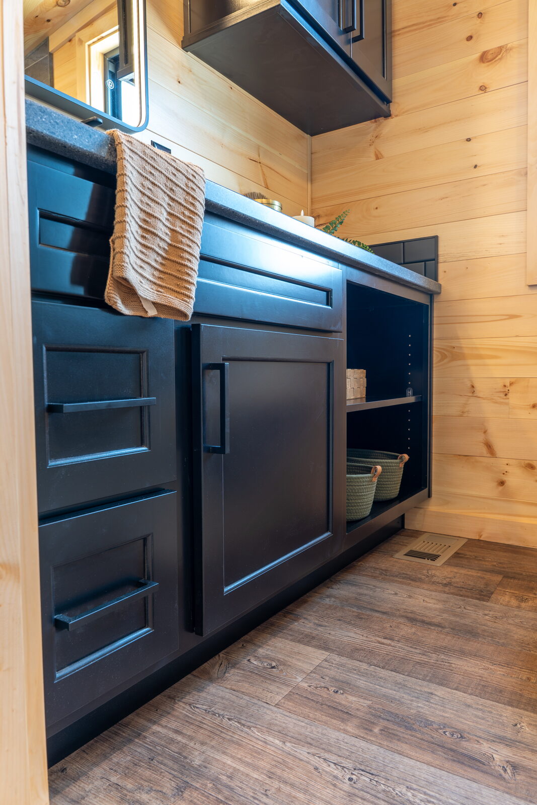 - Plywood construction Custom high-end staggered cabinetry w/ Slow-close cabinet doors & drawers, 5-piece drawer fronts