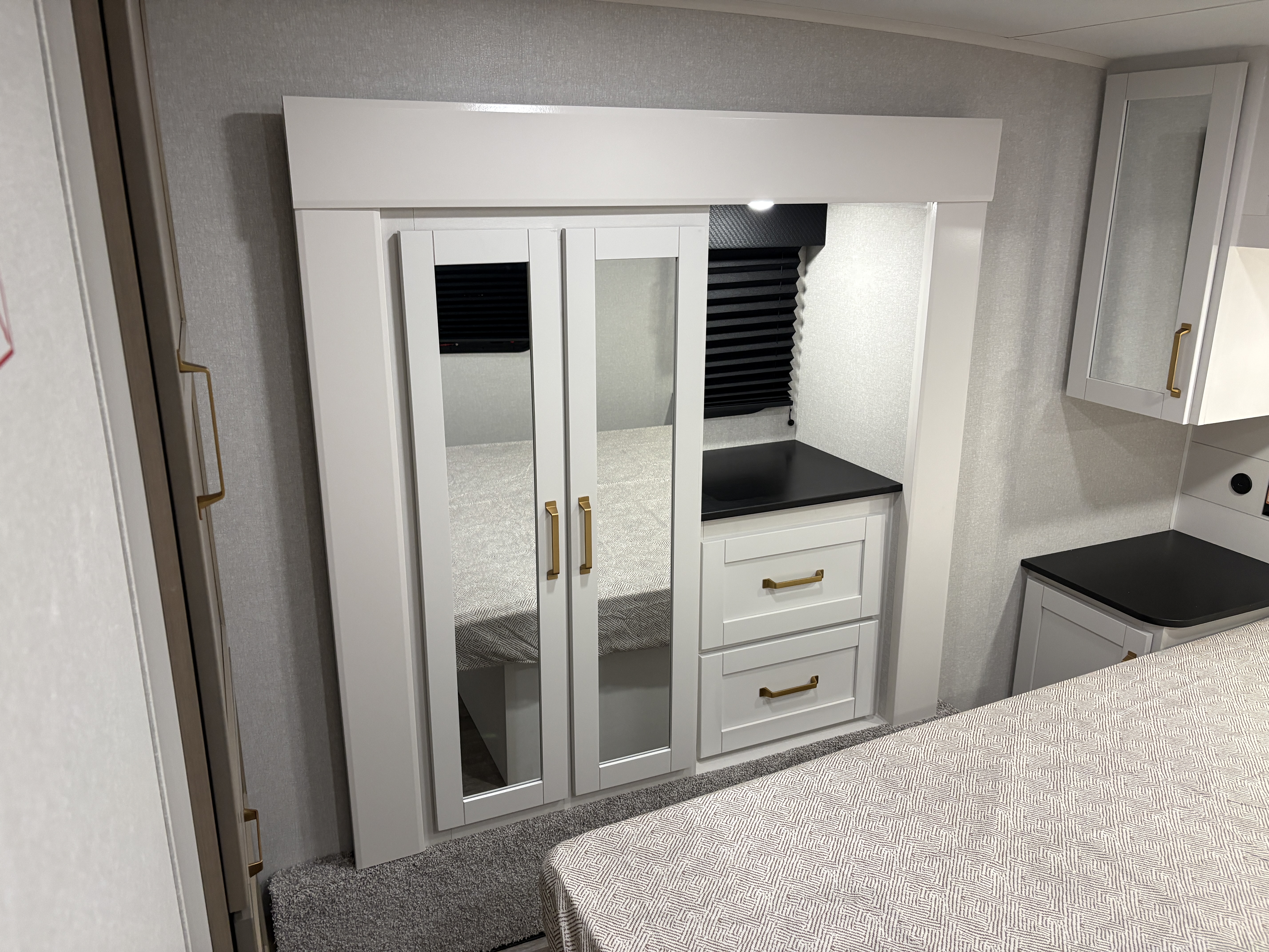 After a day of hiking, fishing, or exploring new destinations, retreat to the private master suite, where high-end finishes and smart design guarantee a restful night’s sleep. Gas-strutted under-bed storage provides extra room for all your essentials, and the design of the bed area is prepped for added convenience, including space for a CPAP machine. Panoramic windows let in natural light and fresh air, creating a breezy, open feel.