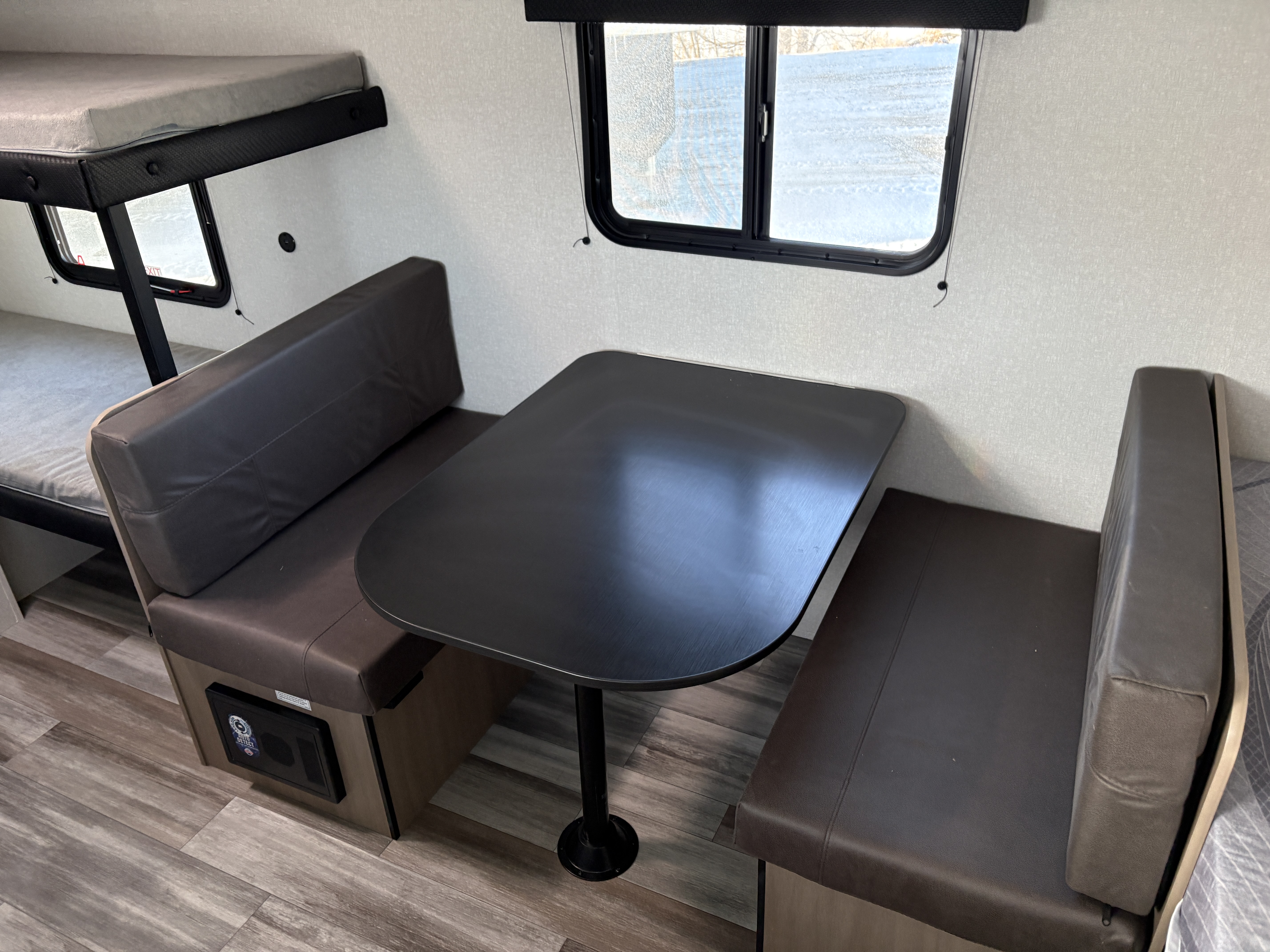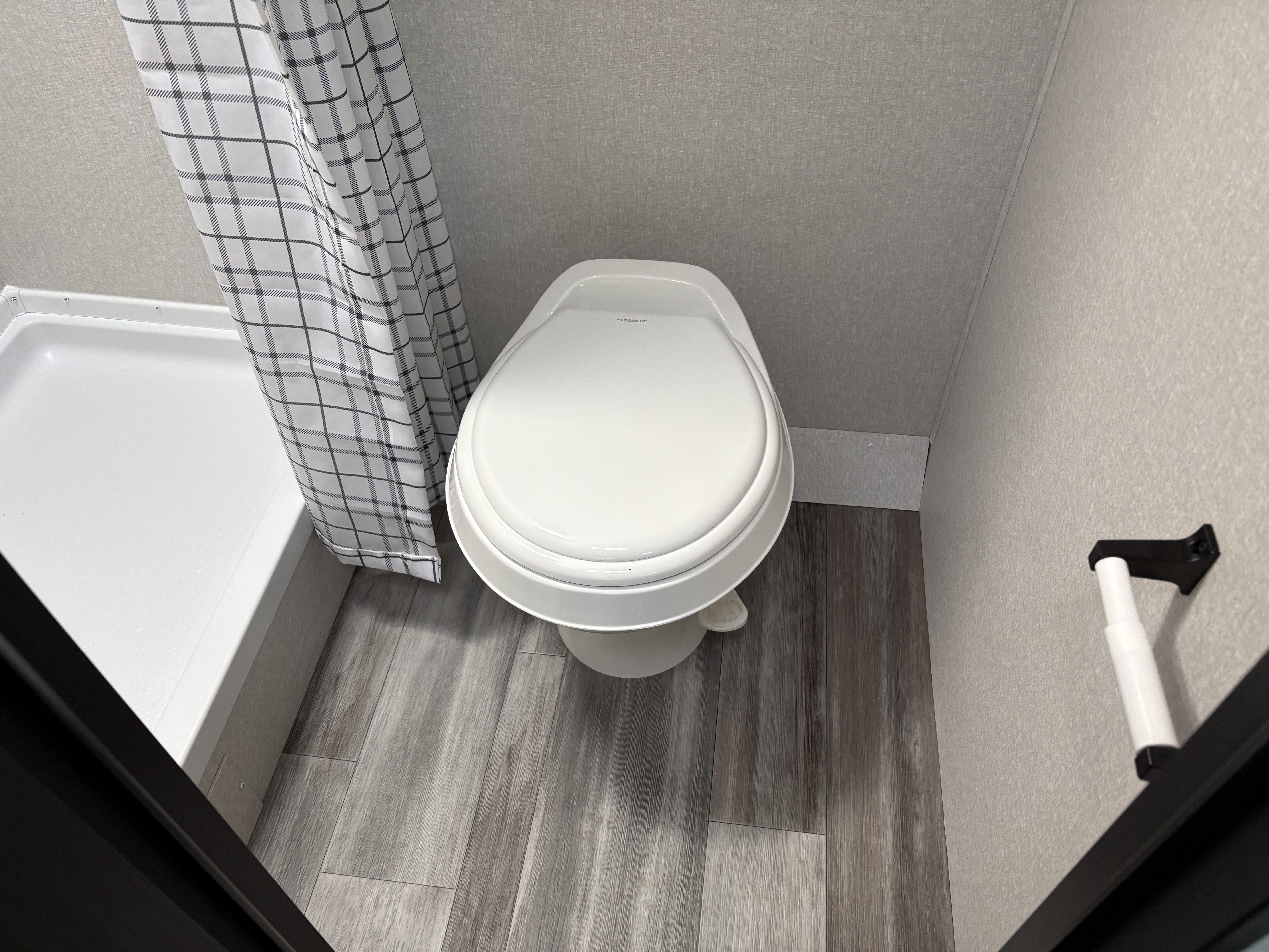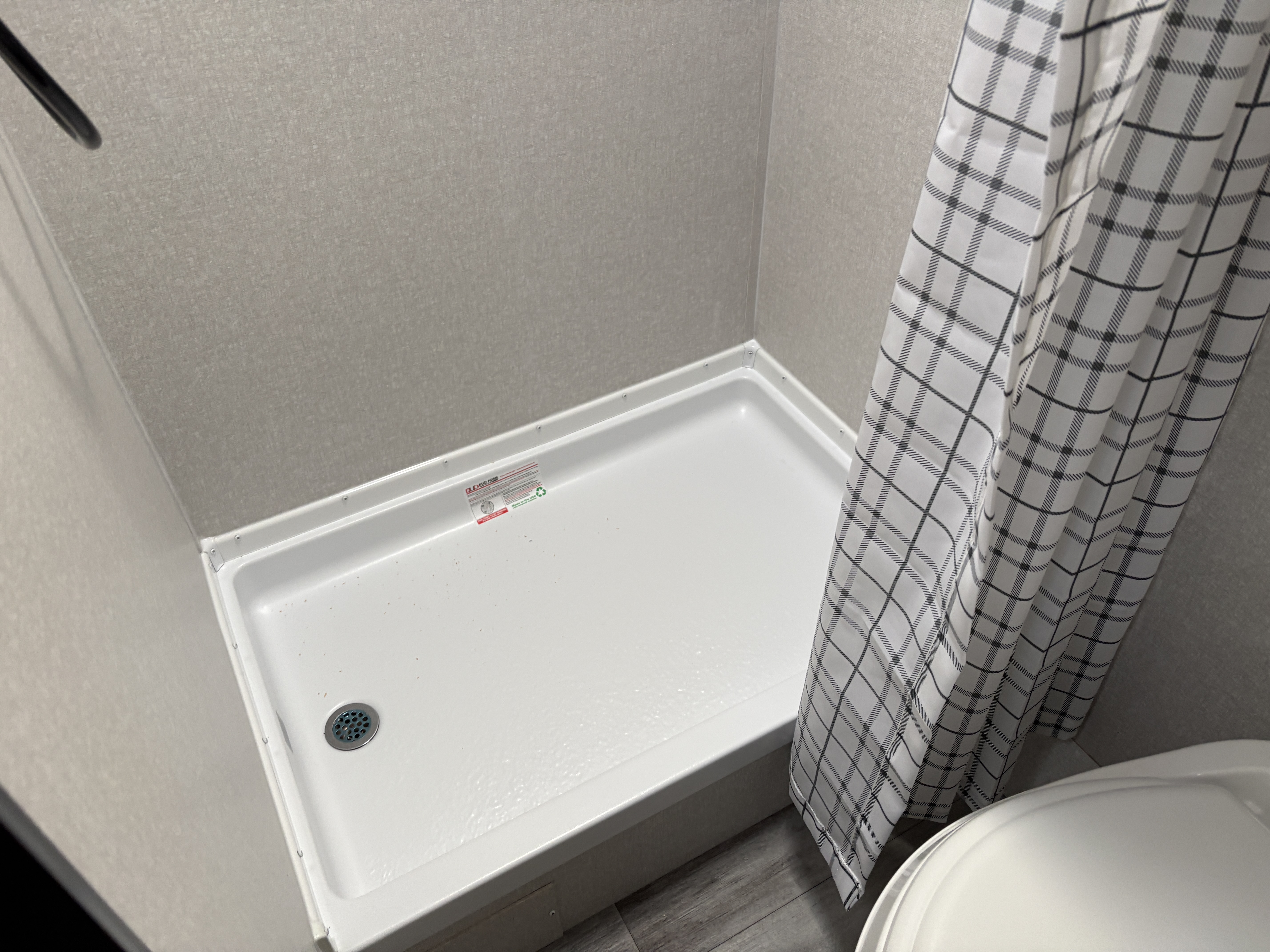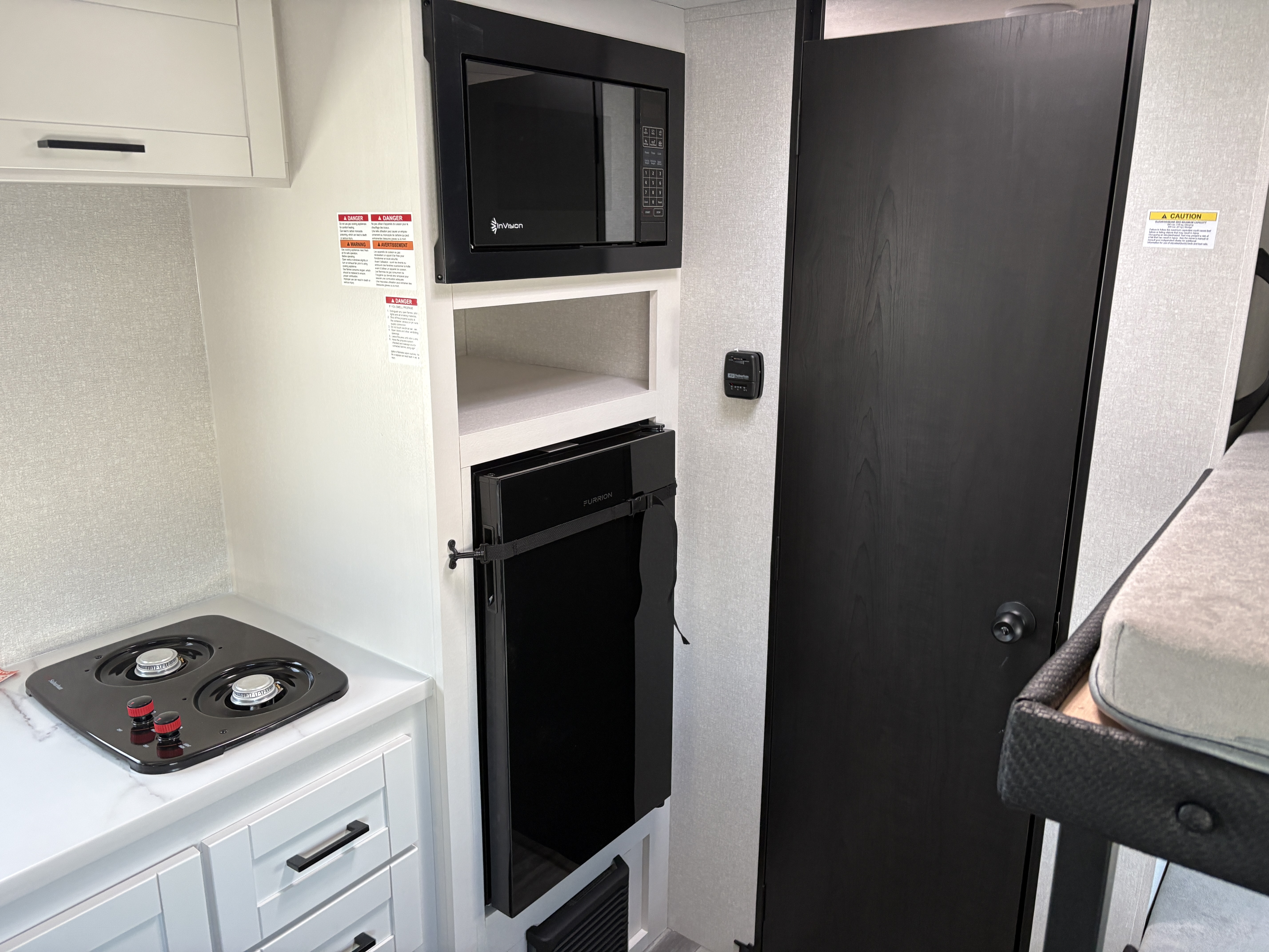 Inside, you’ll find solid hardwood cabinet doors with hidden hinges, giving the space a modern, residential feel. Oversized cabinets and under-bed storage ensure there’s room for everything you need, while the lit exterior passthrough storage makes packing and unpacking a breeze.