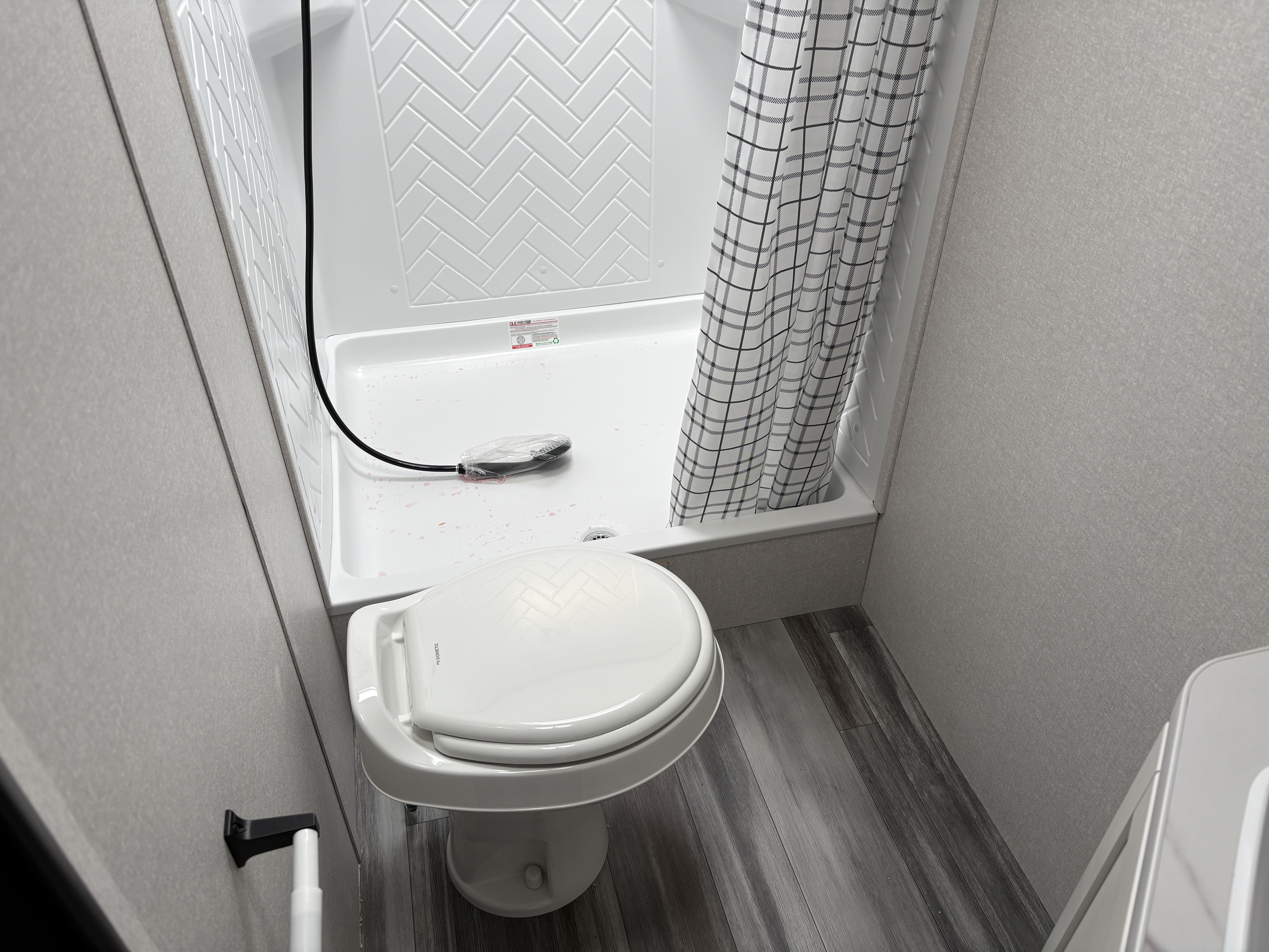 - Marine-grade toilet with foot flush