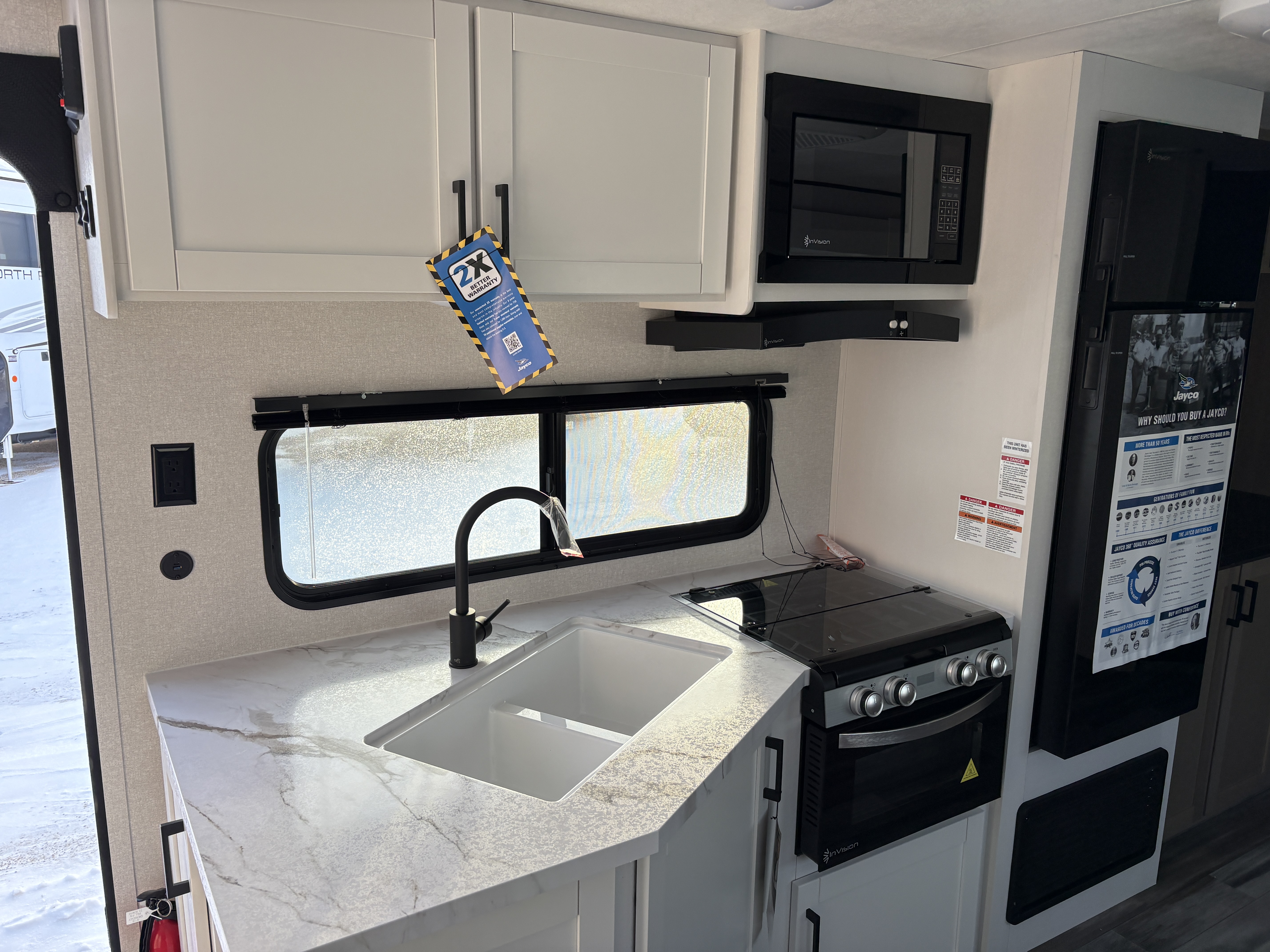 The Jay Flight SLX Travel Trailer is built for easy setup, spacious comfort and rugged durability—so you can spend less time worrying about logistics and more time making memories. With an oversized freshwater tank—up to 25% larger than the competition—you can camp longer without worrying about refills. Western-built models go even further with 76 or 80 gal. capacities, all reinforced with rugged steel bars, not flimsy aluminum straps.
