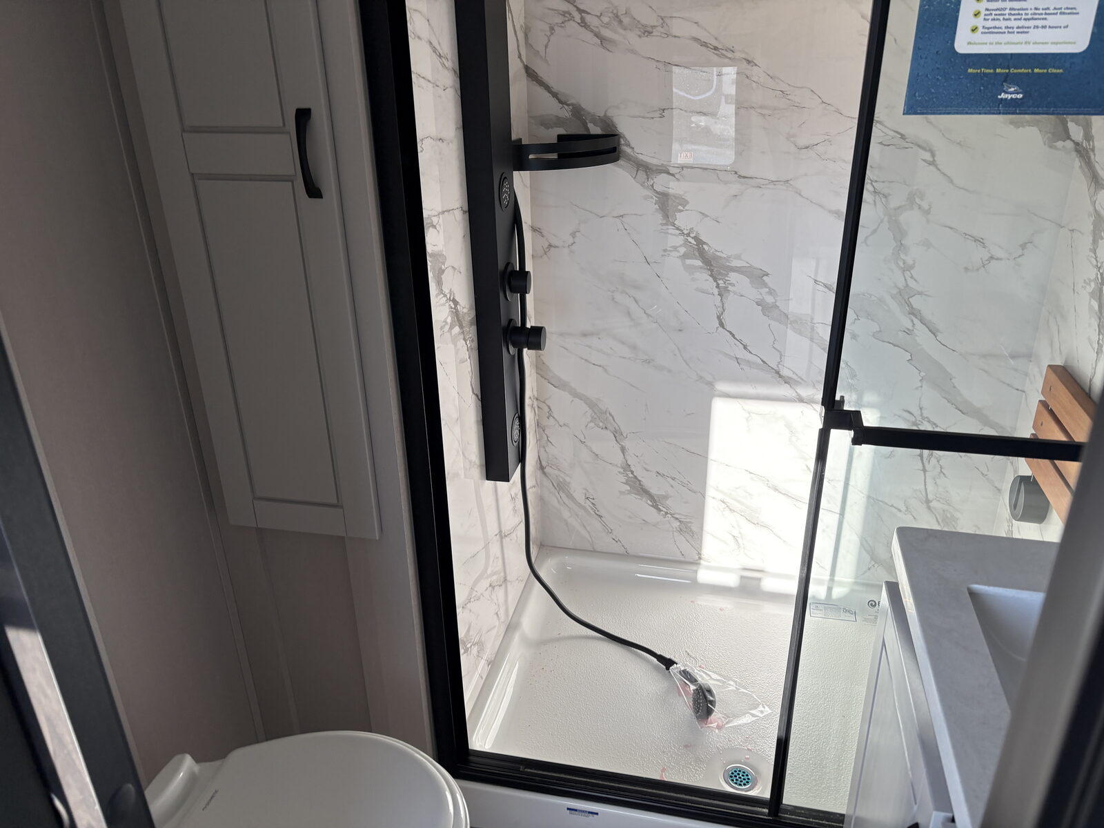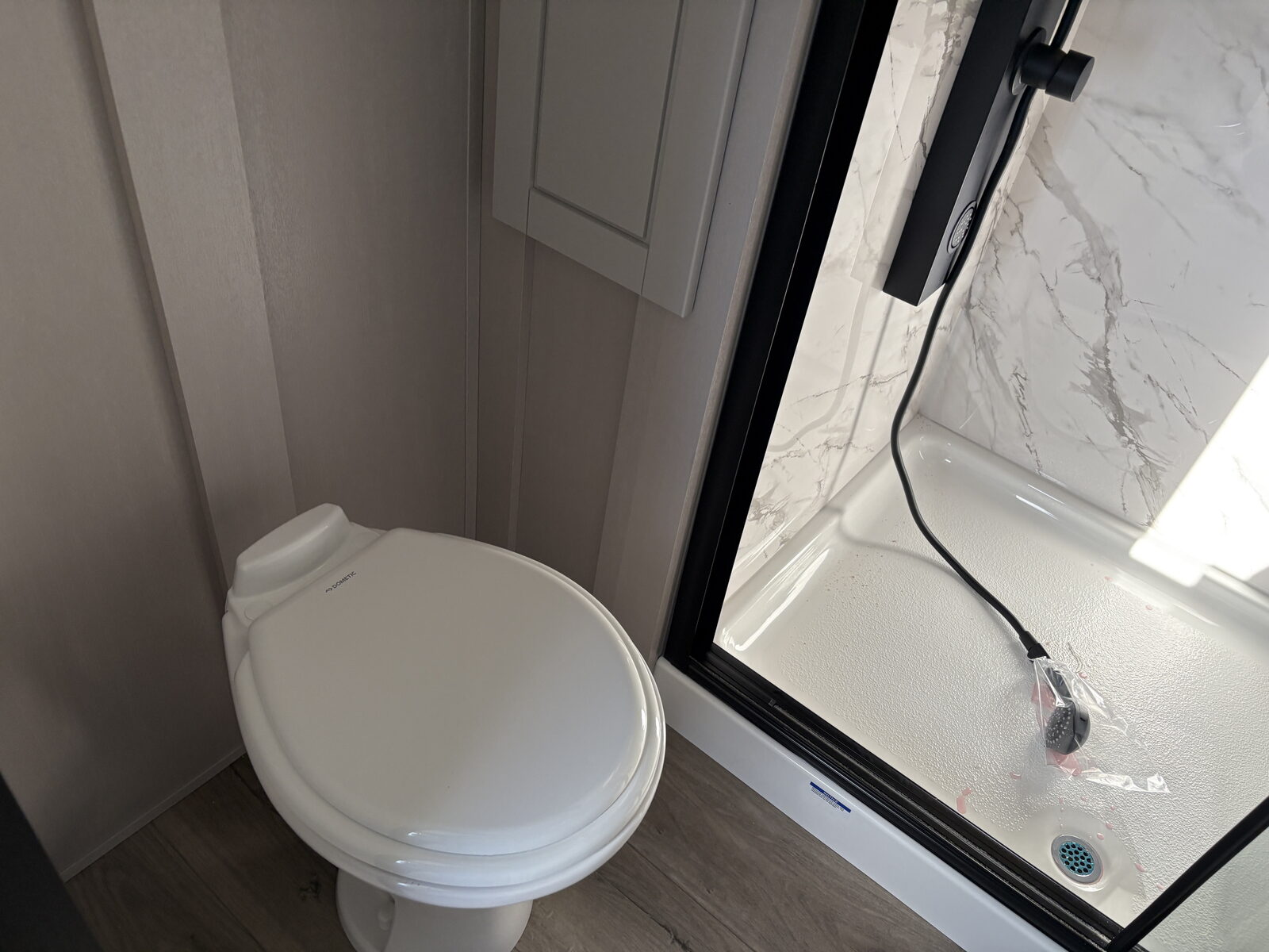 Climate control is made effortless with Jayco’s exclusive HELIX Cooling System™, while three 40-lb. propane tanks give you extended freedom for off-grid stays. In the bathroom, a residential walk-in shower with a teak seat, premium fixtures and spa-inspired details turn routine into indulgence.