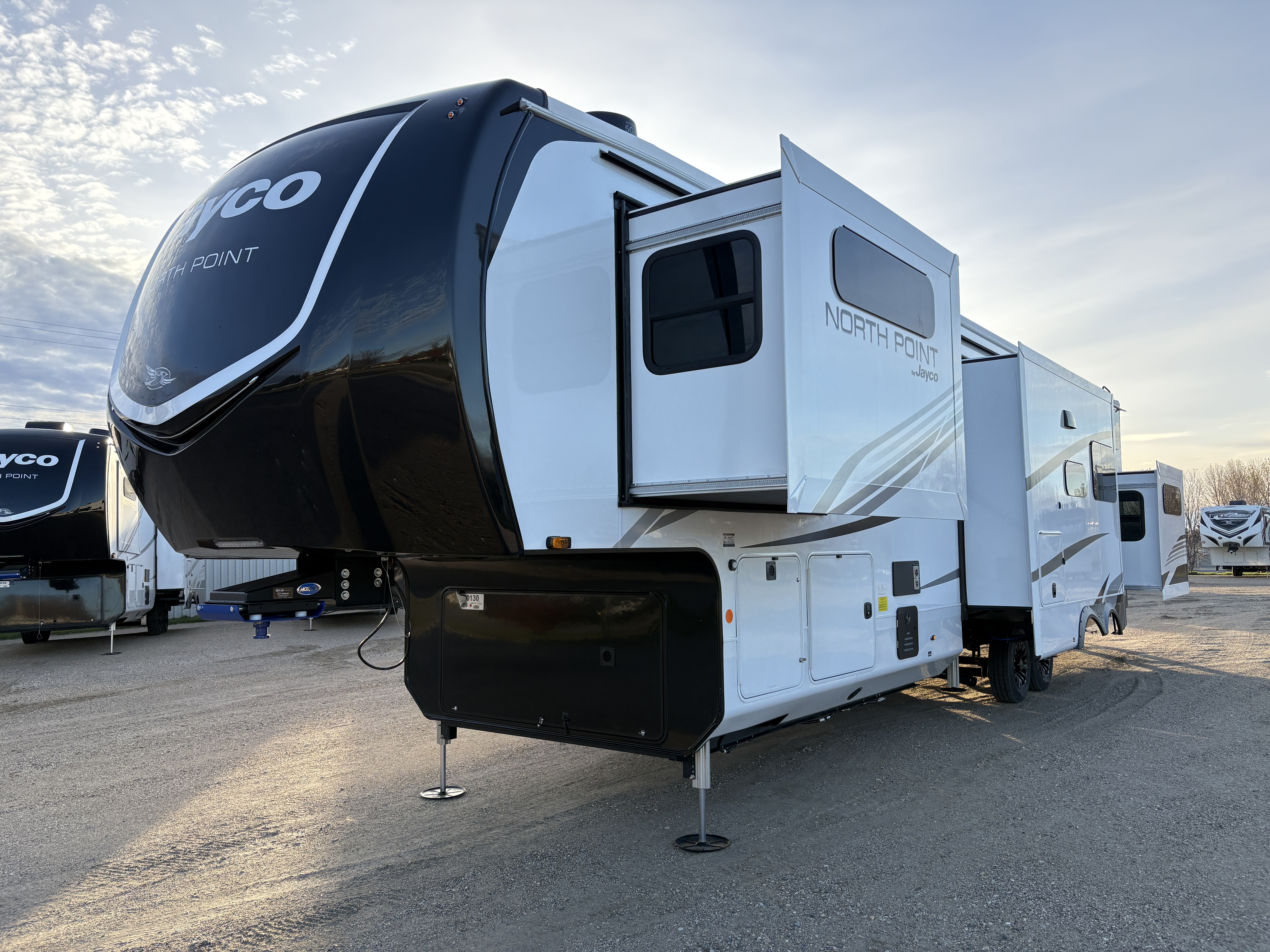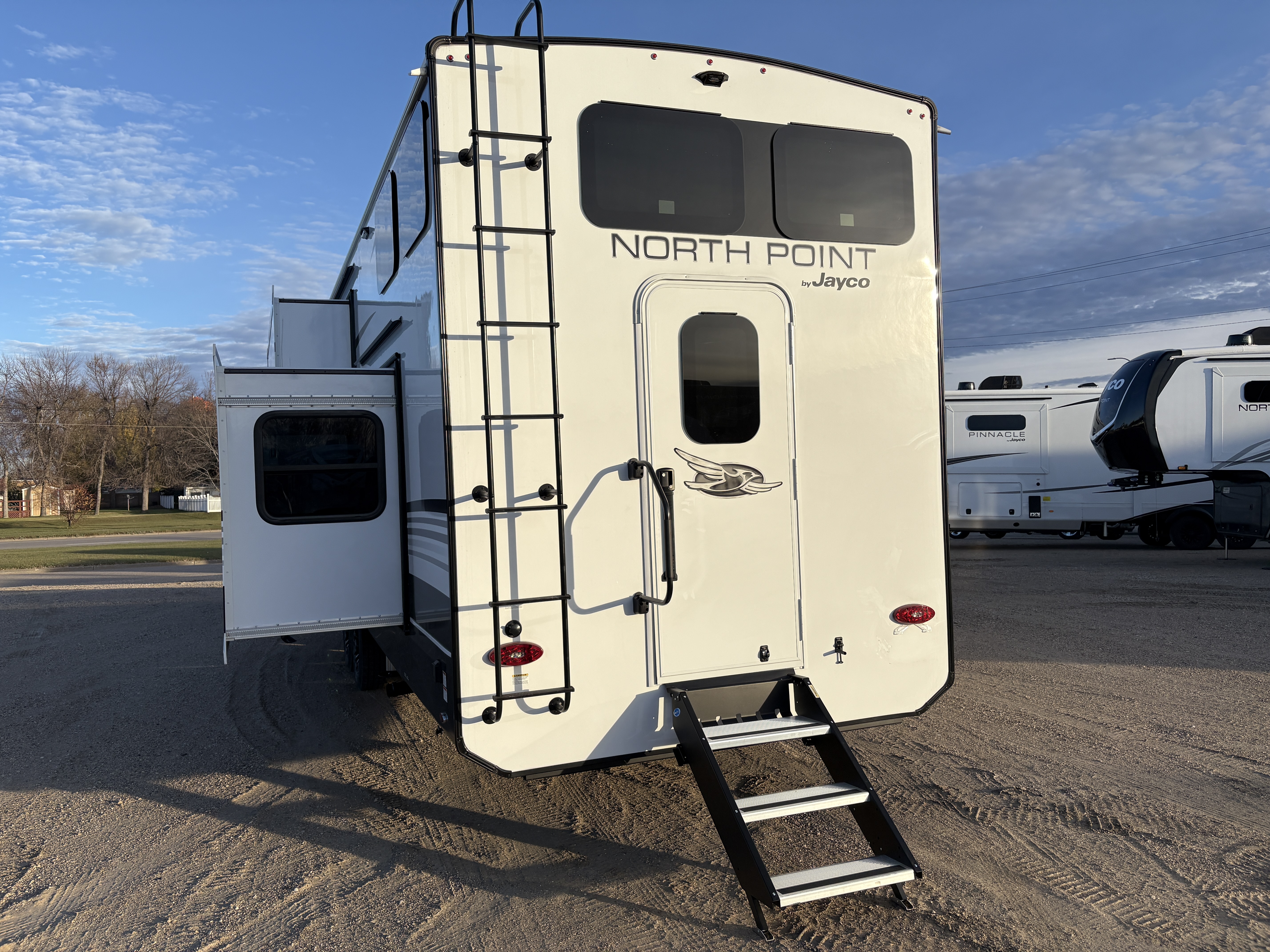 The Jayco North Point Luxury Fifth Wheel sets a new standard for high-end RV living, combining uncompromising craftsmanship with advanced engineering and top-tier comfort. Built for discerning travelers, North Point delivers a seamless blend of power, precision and luxury. The exclusive 5-Star Handling Package—featuring a MORryde® Pin Box, Dexter® axles and rugged 17.5-inch H-rated tires—ensures smooth, confident towing across any terrain.